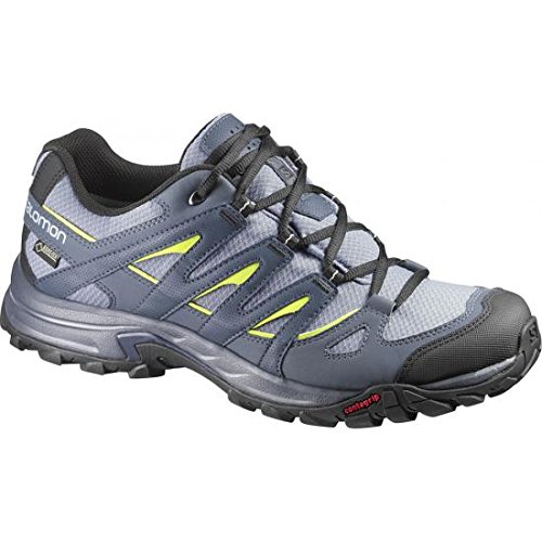 The Salomon Eskape Gore-Tex Walking Shoe is packed full of technology and amazing waterproof features such as GORE-TEX performance comfort footwear, a gusseted tongue to avoid your feet from getting wet or muddy while trekking. The Eskape walking shoe is constructed with Gore-Tex Material, built to keep the wearers feet dry on the inside as well as the outside. The durable water resistant textile upper repells showers and rain meanwhile the sensifit system cradles the foot to provide a precise snug like fit, which then works with Salomon's Sensiflex, a reinforced ball in the foot which wraps around the uppers instep. The base of the shoe is protected by a mud guard, a protection material used to protect the wearers feet against abrasive mud materials. The thick rubber toe cap also provides protection for the foot against sharp objects and mud. The outsole itself is made from Contagrip, a blend of materials that provides a hardy construction of rubber that provides substantial grip and durability across all terrains. A solid walking shoe that doesn't compromise on breathability, it comes with an abrasive resistance lining which allows an excellent air flow and quick drying.